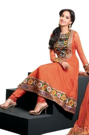 Coral Orange embroidered party anarkali kameez intricate with resham thread, floral work, neck work and patch patti border work.This anarkali kameez is unstitch and length of kameez can be stitched upto size 42. Customisation includes changing front neck style, back neck style, increasing/reducing the length of sleeves.Accessories which is shown in the image is only for shooting purpose.There might be some color variation.Time to deliver: 25 days.