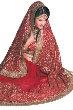 Crimson Red embroidered wedding saree embellished with resham thread, sequins work, floral work, butta work, zari work and patch patti border work.Saree comes with an unstitch blouse piece which can be customised as per your requriment.Customisation includes changing front neck style, back neck style, increasing/reducing the length of sleeves.There might be some color variation.Time to deliver: 10 days.