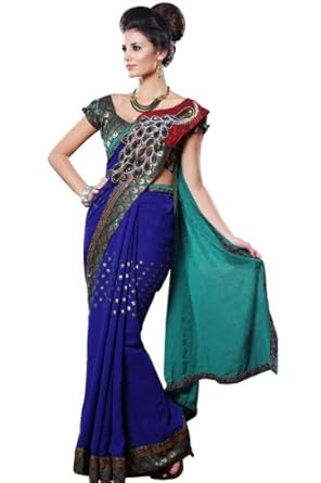 Dark Blue embroidered party saree intricate with zari thread, butti work, peacock work, floral work and patch patti border work.Saree comes with an unstitch blouse piece which can be customised as per your requirement. Customisation includes changing front neck style, back neck style, increasing/reducing the length of sleeves.Accessories which is shown in the image is only for shooting purpose.There might be some color variation.Time to deliver: 10 days.