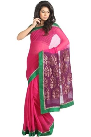 Deep Cerise Pink embroidered party saree intricate with zari thread, sequins, floral print and patch patti border work.Saree comes with an unstitch blouse piece which can be customised as per your requirement. Customisation includes changing front neck style, back neck style, increasing/reducing the length of sleeves.Accessories which is shown in the image is only for shooting purpose.There might be some color variation.Time to deliver: 15 days.