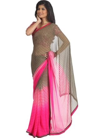 Deep Ecru Brown and Persian-rose Pink printed party saree with sequins, barfi style print and printed border.Saree comes with an unstitch blouse piece which can be customised as per your requirement. Customisation includes changing front neck style, back neck style, increasing/reducing the length of sleeves.Accessories which is shown in the image is only for shooting purpose.There might be some color variation.Time to deliver: 15 days.