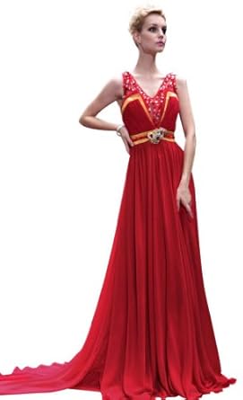 Kingmalls Womens Red V Neck sexy Ceremony wedding Gowns Prom Evening Party Dresses