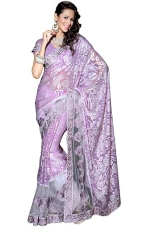 Mauve Violet embroidered party saree intricate with resham thread, sequins, floral work, brasso work, floral print and patch patti border work.Saree comes with an unstitch blouse piece which can be customised as per your requirement. Customisation includes changing front neck style, back neck style, increasing/reducing the length of sleeves.Accessories which is shown in the image is only for shooting purpose.There might be some color variation.Time to deliver: 10 days.