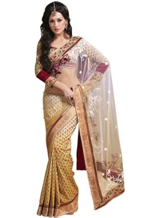 Off-white and Buff Yellow embroidered party saree intricate with resham thread, zari thread, floral work, sequins and patch patti border work.Saree comes with an unstitch blouse piece which can be customised as per your requirement. Customisation includes changing front neck style, back neck style, increasing/reducing the length of sleeves.Accessories which is shown in the image is only for shooting purpose.There might be some color variation.Time to deliver: 25 days.
