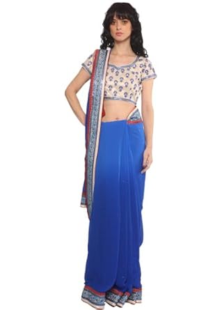 Persian Blue and Royal Blue embroidered party saree intricate with resham thread, sequins, floral work and patch patti border work.Saree comes with an unstitch blouse piece which can be customised as per your requirement. Customisation includes changing front neck style, back neck style, increasing/reducing the length of sleeves.Accessories which is shown in the image is only for shooting purpose.There might be some color variation.Time to deliver: 15 days.