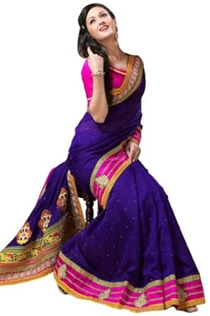 Persian-indigo Violet embroidered party saree intricate with zari thread, resham thread, sequins, floral work and patch patti border work.Saree comes with an unstitch blouse piece which can be customised as per your requirement. Customisation includes changing front neck style, back neck style, increasing/reducing the length of sleeves.Accessories which is shown in the image is only for shooting purpose.There might be some color variation.Time to deliver: 25 days.