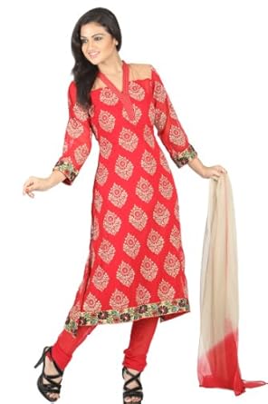 Coral Red embroidered festival churidar kameez intricate with resham thread, butta work and patch patti border.This ready made kameez is available upto chest size 40. Accessories which is shown in the image is only for shooting purpose.There might be some color variation.Time to deliver: 7 days.