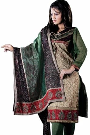 Clothes give the first impression about your personality.This Beige and Viridian Green churidar kameez with dupatta is alluring.This kameez is embellished with sequins,zari and patch work designed in unique pattern.There might be some color variation.Time to deliver : 7 days.