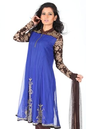 Royal Blue embroidered party kurti intricate with zari thread, neck work, keri work, floral work and patti border.This kurti is readymade and is available upto chest size 42.There might be some color variation.Time to deliver: 10 days.