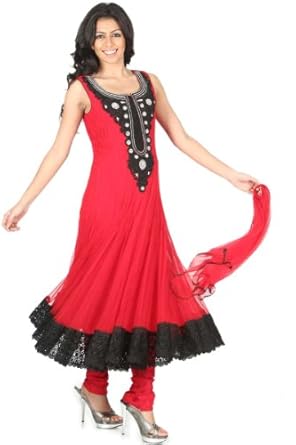 Vermilion Red embroidered festival anarkali kameez intricate with resham thread, stone work, sequins, neck work and patch patti border.This ready made kameez is available upto chest size 36 with matching sleeves of 5-6 inches. If you want full sleeves then there are 2 choices:1) Full net sleeves @3usd. 2) Full georgette sleeves @5usd.Accessories which is shown in the image is only for shooting purpose.There might be some color variation.Time to deliver: 7 days.